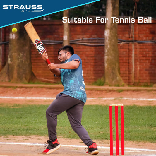 STRAUSS Power Kashmir Willow Cricket Bat| Size: Short Handle(SH) | Suitable for Tennis Ball |Red| Ideal for Boys/Youth/Adults (1050-1200 Grams)