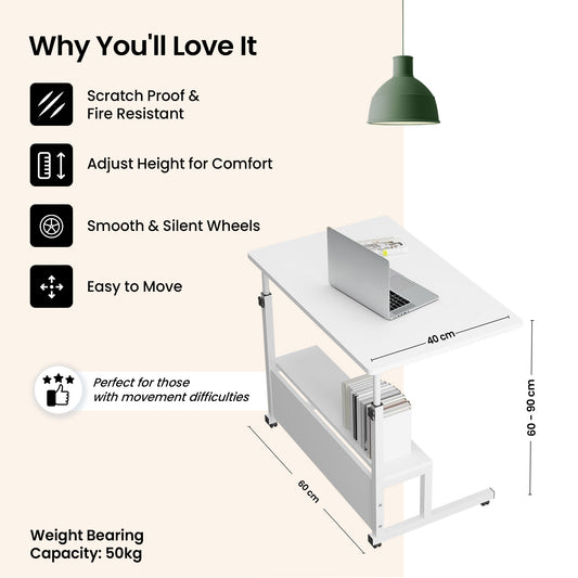 Manual Height Adjustable Table For Adults, Students, Kids |Portable Table, Computer Table, Breakfast Table With Wheels| Office Table For Work From Home, Bed Study Table |60*40 cm,Walnut,1