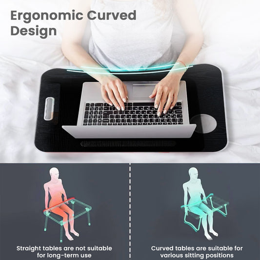 Savya home® Multi-Purpose New Laptop Table/Bed Table/Wooden Foldable Bed Table/LAPDESK/Study Table/Portable Table (Black Silver) (Black-White) (Light Grey)