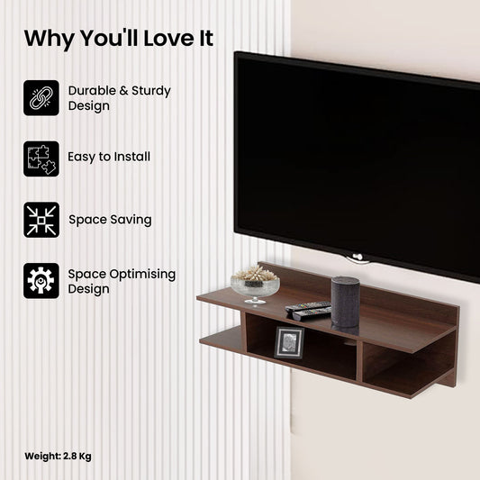 Wall Mount TV Cabinet with Set Top Box Stand | Premium Engineered Wood | Easy to Assemble | Living Room, Bedroom & Office | Space Saving Design | Wi-Fi Router Stand with Storage (Medium)