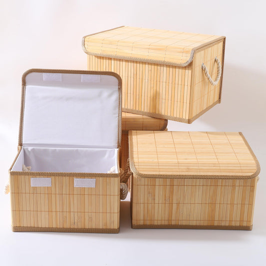 Homestic Pack of 3 Storage Basket | Bamboo Cloth Storage Basket | Storage Basket for Clothes-Toys | Natural Bamboo Cube Storage Basket | Foldable & Durable | SPYLH1001 | Brown