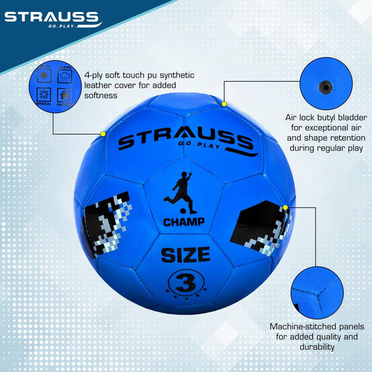 STRAUSS Official Football Size 3 |Professional Match Ball for Indoor & Outdoor Games & Training for Kids & Adults | Granular Texture with High-Performance Grained Surface, (Blue)