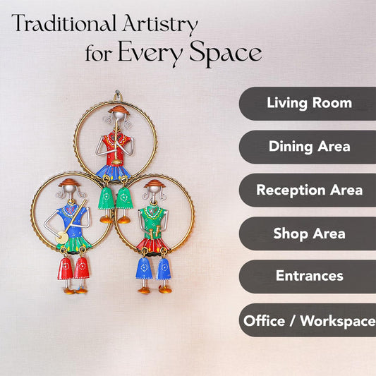 Rajasthani Musicians Metal Wall Decoration Items For Living Room,Bedroom Rajasthani Art Sculpture For Wall Decor Perfect Wall Hanging For Home Decor,Sofa Wall Or Office Decor,38 Centimeters