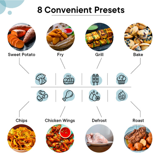 The Better Home Fumato Digital Electric Grill Air Fryer for Home- 12 Presets, 4.5L,1300W, 5-in-1 Roast, Bake, Grill, Fry, Defrost | 90% Less Oil, Rapid Air Technology | 1 Year Warranty (Misty Blue)
