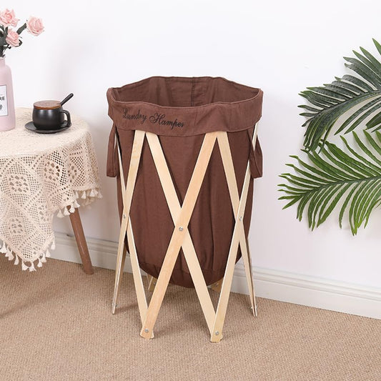 Heart Home Laundry Basket With Foldable Wooden Stand|Stylish Laundry Hamper, Organizer|Idol For Home Décor, Storing Dirty Clothes, Toys (Brown)