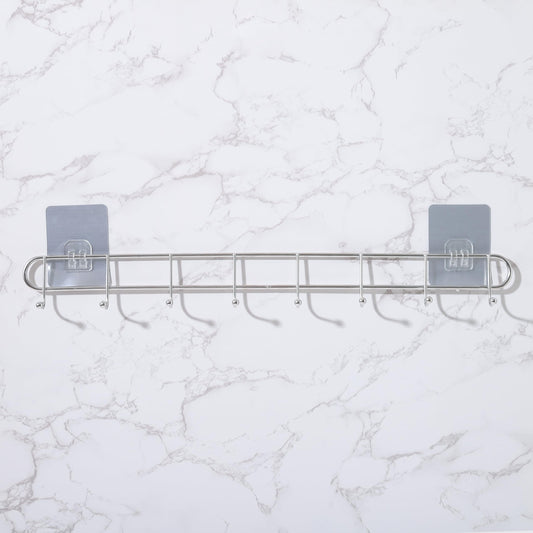 Kuber Industries Wall Hanger | Hooks Rack Organizer | Hanger for Kitchen & Bathroom | Door Hook Hanger | Hanger Clothes Organizer | Stainless Steel Wardrobe Hanger | JPJ048 | Silver