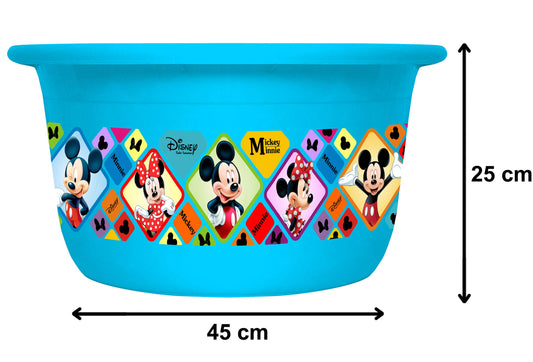 Disney Mickey Minnie Print 2 Pieces Unbreakable Plastic Multipurpose Bath Tub/Washing Tub 25 Ltr (Blue & Black) -HS_35_KUBMART17916