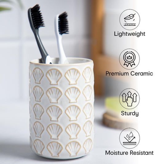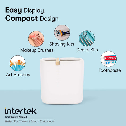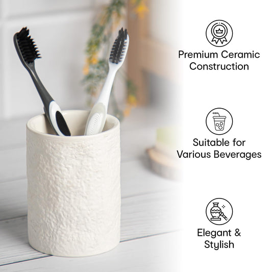 Ceramic Toothbrush Holder for Bathroom | Toothpaste, Makeup Brush Holder for Bathroom | Bathroom Accessories for Wash Basin | Home, Office, Bathroom Organiser | White, Textured
