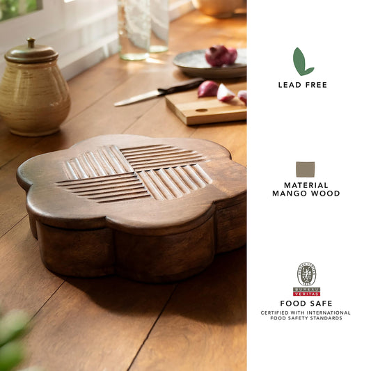 Wood Masala Box - Brown | Multipurpose Spice Container with 7 Compartments | Handmade | Hand Wash Only