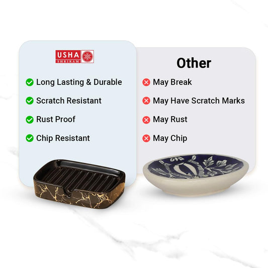 USHA SHRIRAM Soap Case | Ceramic Soap & Lotion Dispenser Set | Kitchen Dish Soap Pump Dispenser Set | Hand Shower Washing Soap Dispenser for Kitchen Sink & Bathroom (Design 1 - Black, Pack of 1)