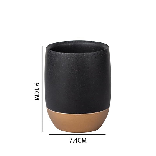 4 Pcs Set: Bathroom Accessory Set with Soap Dispenser & Toothbrush Holders | Ceramic | Black