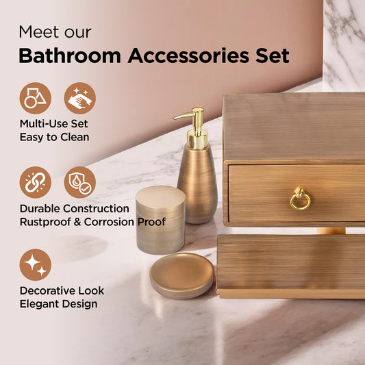 5Pcs Bathroom Accessories Set Soap Dispenser for Bathroom, Cotton Swab Box, Vanity Box, Towel Tray & Soap Holder for Bathroom| Bathroom Vanity Set | Bathroom Organiser - Khaki