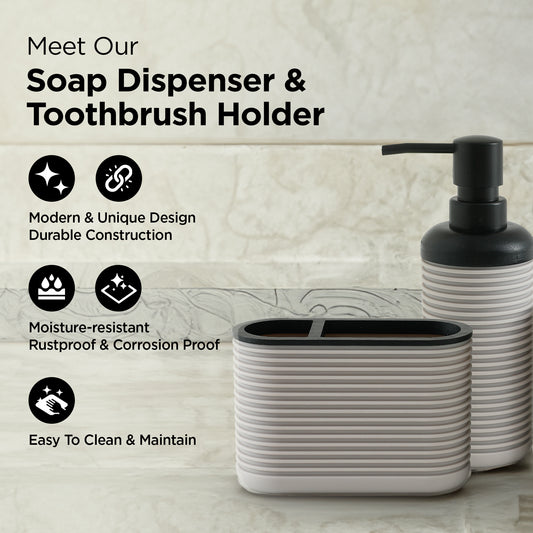 Combo: UMAI Bathroom Accessory Set - Durable & Stylish | Soap Dispenser 305ml & Tooth Brush Holder | Grey