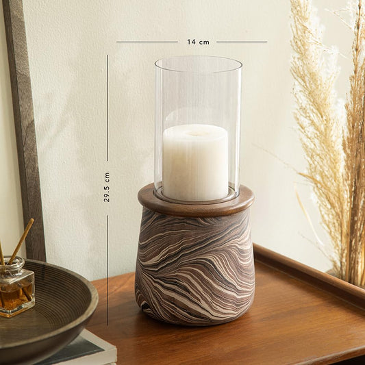 Gaiyo Pillar Candle Holder (Large) | Decorative Candlestick Holders for Living Room and Home Decor | Wooden Candle Stands with Glass Cover for Wedding, Parties and Dining Table Centerpiece