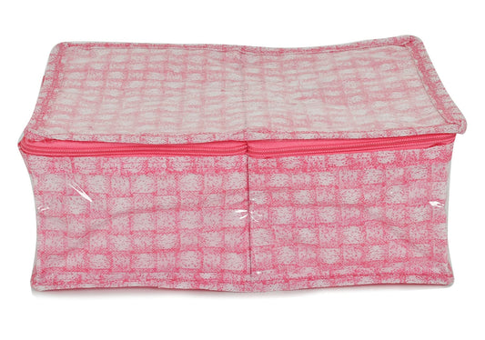 Check Design Laminated PVC Undergarments Organizer Bag - 2 Compartments, Transparent Window | Pink