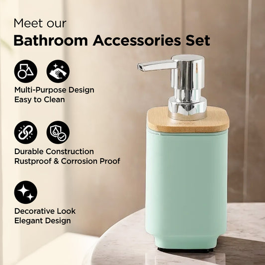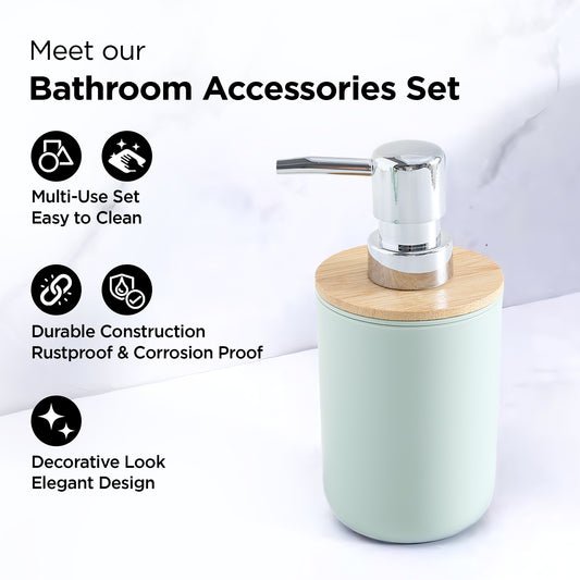 Bathroom Accessories Set | 4 Piece |Soap Dispenser for Bathroom| Tooth Brush Holder | Mouth Wash Cup |Soap Dish | for Bathroom | Green (Set of 4)