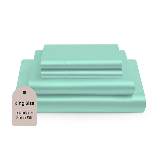 400TC Luxurious Satin Silk King Size Elastic Fitted Bedsheet with 2 Pillow Covers - Silky Soft, Skin-Friendly, Breathable, Durable Premium Bedding | 78" X 72" X 10" (Aqua Blue, King Fitted)