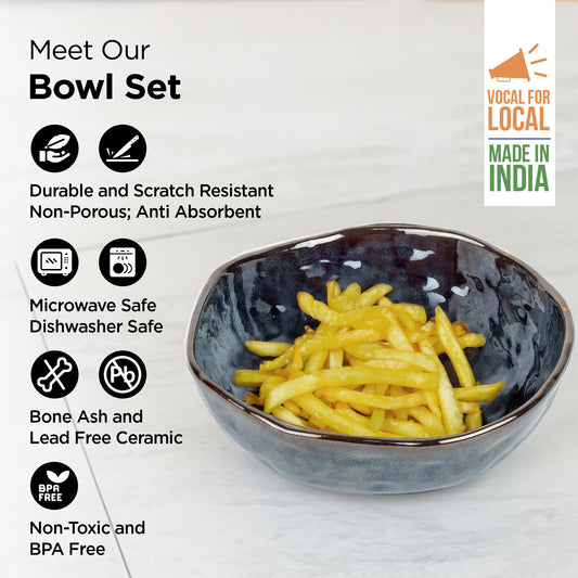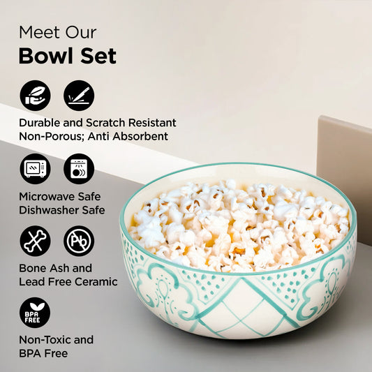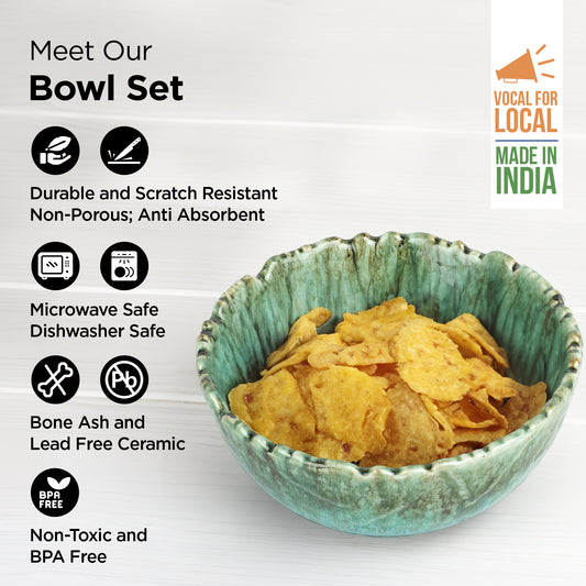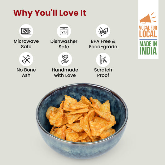 USHA SHRIRAM Ceramic Bowl for Snack & Dinner | Ramen Soup Bowl Microwave Safe | Chip Resistant Dinnerware | Snack Serving Bowl | Dinning Bowl Katoris for Dinner | Serving Bowl Set | Pasta Bowl