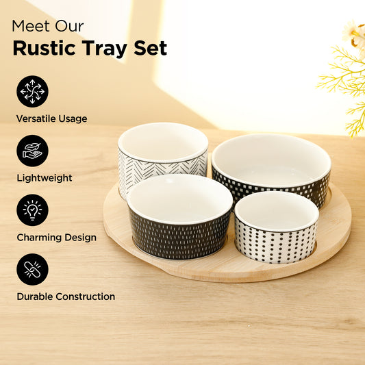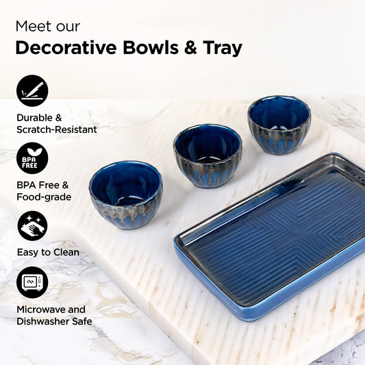 USHA SHRIRAM Ceramic Snacks Serving Bowls Set with Tray | Microwave Safe |Ceramic Serving Platter | Ceramic Bowl for Serving | Dry Fruit Tray for Serving | Platters Serving Set for Snacks