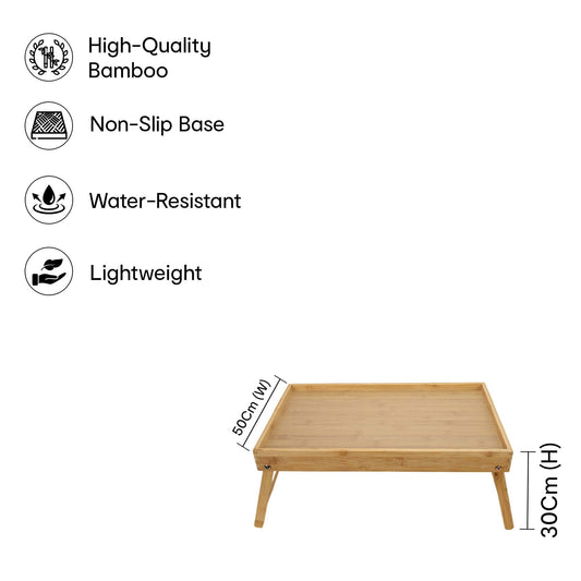 Folding Bamboo Serving Tray - Waterproof & Splinter-Resistant | 30cm x 50cm | Modern Brown | Hand Wash