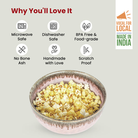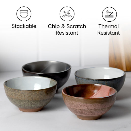 Hand Glazed Mini Bowls - Set of 4 | Terracotta Designer Dessert Cup for Serving Ice Cream, Sundaes, Sweets, Snacks, Fruits, Pudding | Kitchen Bowl for Hot & Cold Meals | Pink, Grey, Brown, Rose