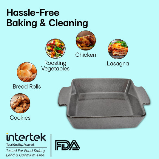 Glazed Stoneware Ceramic Baking Dish | Oven, Dishwasher, Microwave Safe | Grey | Oven to Table Cookware For Kitchen | 6.7(H)x24(W)x31(L)cm