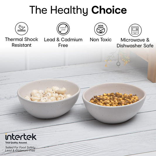 Speckled Small Bowl Set of Two| Ideal for Snacks, Rice, Salad, Noodles,Vegetables and Fruits | Dishwasher & Microwave Safe | Stoneware Dinnerware | 7cm (H) X 13.8cm (Dia.) | Beige