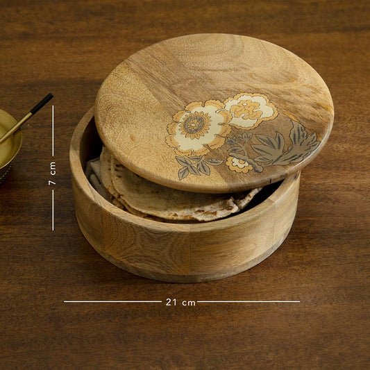 | Wooden Chapati Box for Kitchen (2.5L) | Dabba with Lid | Casserole for Dining- Serving | Chapatti Box | Storage (Engraved)