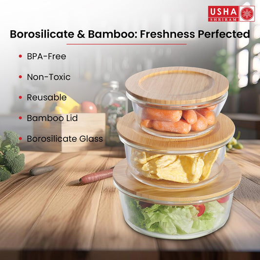 Combo: Borosilicate Food Containers (Microwave Safe) | 3 Pcs - 320ml, 520ml, 800ml & 2L Insulated Casserole | Clear