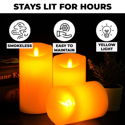 LED Candles for Home Decoration|Battey Operated|Flameless Yellow Light|Safe & Easy to Maintain|Diwali Lights for Home Decoration, Other Festivities & Parties|Pack of 3|B0-005F|White