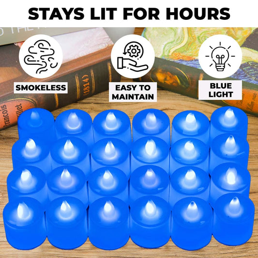 Kuber LED Tea Light Candles for Home Decor |Battey Operated |Flameless Yellow Light |Diwali Lights for Home Decoration,Along with Other Festivities & Parties|B0-051702B (Candle with Blue) Pack of 24
