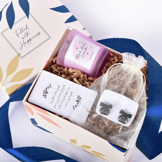 Birthday Gift for Women|Gift Box Pack of 2 with Candle (Lavender,60gm) & Yellow Chimes Earring|Anniversary Gift for Wife, Valentine Gift for Girlfriend, Birthday Gift for Mother