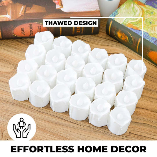 Urbane Home LED Tea Light Candles for Home Decor |Battey Operated |Flameless Yellow Light |Diwali Lights for Home Decoration|BO-051701 (Melted Candle with White|Pack of 24