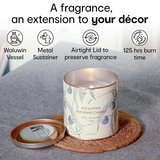 Eucalyptus Soy Blend Candle - 125H Burn Time | Designed by Judith Young | White