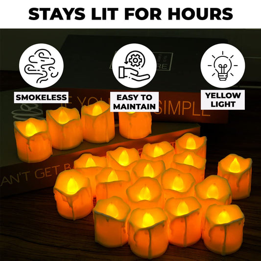 LED Candles for Home Decoration|Battey Operated|Flameless Yellow Light|Safe & Easy to Maintain|Diwali Lights for Home Decoration, Other Festivities & Parties|B0-002,Pack of 24(White)