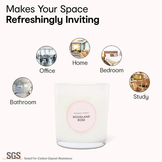 Scented Candle|Up To 165 Hours Burn Time|Home Fragrance|Scented Candles For Home Décor|Paraffin&Palm Wax Blend Scented Candle In Clear Glass Jar|Woodland Rose Fragrance|Long-Lasting