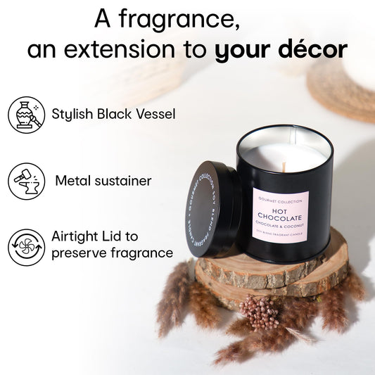 hot Chocolate Gourmet Scented Candle with Metal lid | Soy Wax Blend Fragrant jar Candle | Aesthetic votives for Home, décor, Gifting | Chocolate & Coconut Aroma Pillar Candle | 70 hrs Burn time