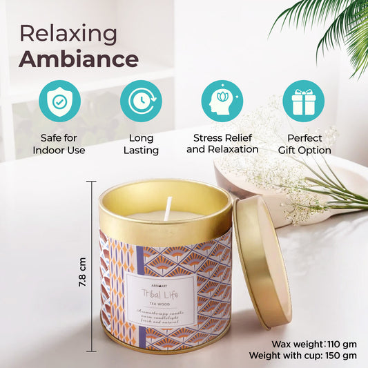 Scented Candles for Home Décor (15Hrs Burn Time) Teak Wood Aroma Scented Candles for Bedroom Reusable Tin Jar|Home Décor Items|Diwali Decoration Items for Home Décor | Diwali Gifts