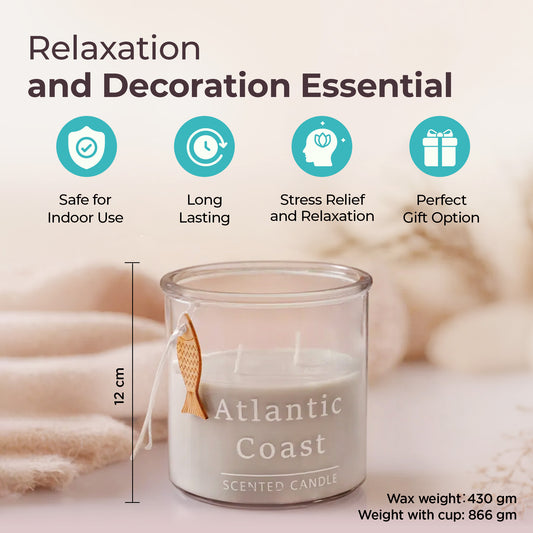 Scented Candles for Home Décor (33Hrs Burn Time) Sea Salt Aroma Scented Candles for Bedroom Reusable Glass Jar|Home Décor Items|Diwali Decoration Items for Home Décor | Diwali Gifts