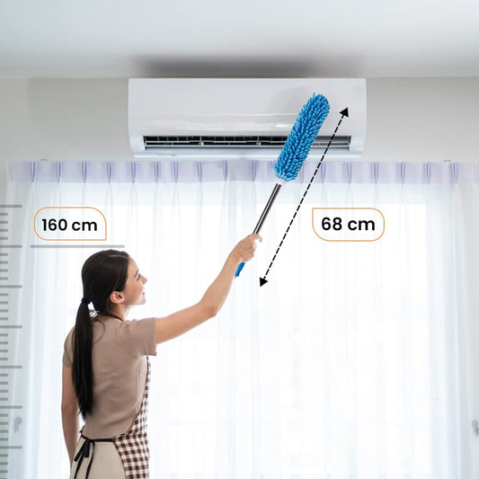 Telescopic Flexible Duster | Wooden Handle | Fan Cleaner Brush with Long rod | Dusting Accessory | Size Adjustable | Cleaning Supplies | Dusting brush for home cleaning | Grey | 1 Pack