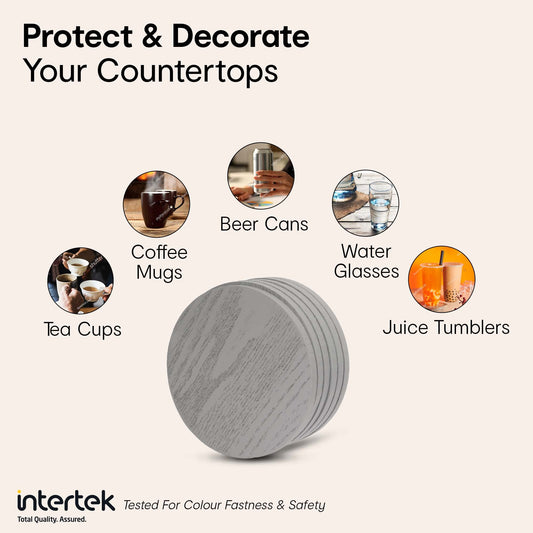MDF Round Coaster Set of 6 | Reversible Tea/Coffee Coasters for Dining Table | Grey Tea & Coffee Coasters | Table Coaster Set of 4 for Tea Cups Coffee Mugs Beer Cans & Water Glasses | 10 Cm Dia
