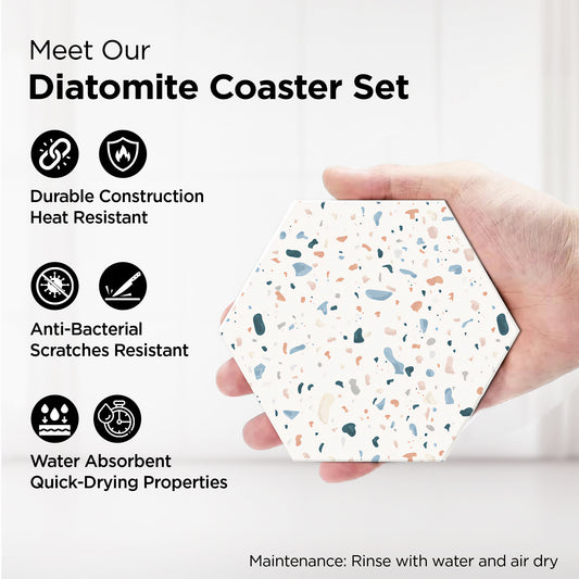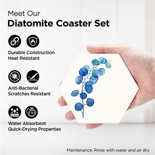UMAI Coaster Set of 6 Diatomite Table Decor Accessories | Cups Mugs Glasses | Home Office Coaster Holder Hexagonal Design | Absorbent Blue Pack