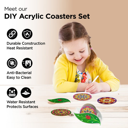 Tea Coaster Set of 6 with Stand (Dia- 9.8cm, Thick- 2mm)| Coasters for Dinning Table for Hot Pots | Non Slip Mat | Gift for Housewarming | Kitty Party Return Gifts for Women (Multi-Colour)