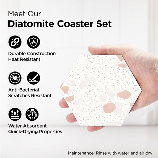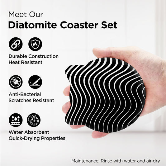Diatomite Coaster Set of 6 (Dia - 10cm) | Dining Table Decor Accessories | Coasters for Coffee Mugs/Glasses/Cups | Absorbent & Heat Resistant | Unique Shape | Kitty Party Return Gifts for Women