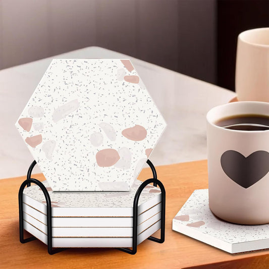 18 Pcs Diatomite Tea Coaster with Holder - Water Absorbent Hexagonal Tea Cup & Water Glass Cover Top Lid for Teapoy- Cream