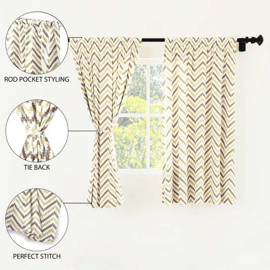 Homes Polyester Printed Window Curtain for 6 ft with Tie Back, Rod Pocket, Light-Filtering, Curtains for Kitchen, Bedroom, Living Room (140x183 cm), Dollar Beige, Set of 2