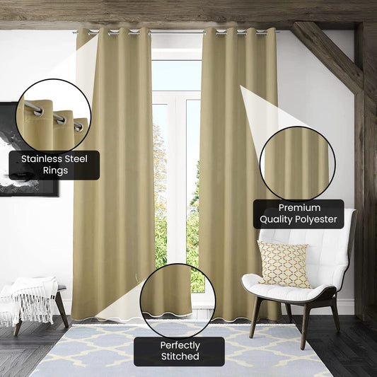 Set of 2 100% Darkening Black Out Curtain I 5 Feet Window Curtain I Insulated Heavy Polyester Solid Curtain|Drapes with 8 Eyelet for Home & Office (Gold)