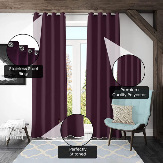 Urbane Home Polyester Decorative 5 Feet Window Curtain Darkening Blackout | Drapes Curtain With 8 Eyelet For Home & Office (Wine)