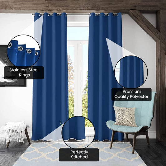 Urbane Home Polyester Decorative 7 Feet Window Curtain Darkening Blackout|Drapes Curtain With 8 Eyelet For Home & Office (Blue)