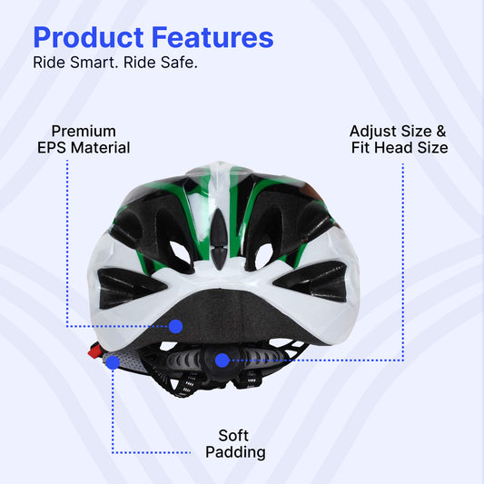 Strauss Cycling Helmet, Elite | Light Weight with Superior Ventilation | Mountain, Road Bike & Skating Helmet with Premium EPS Foam Lining| Ideal for Adults and Kids| Size: Junior,(Black and Green)